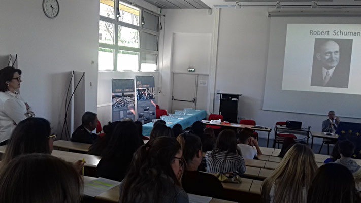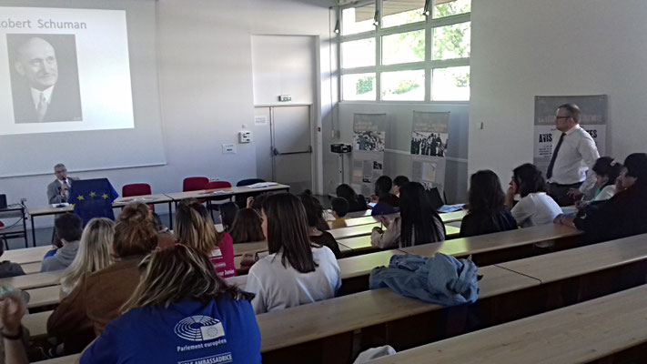 Grâce à l'énorme travail engagé par Vivien Goulmy dans le cadre du programme européen, la conférence menée par Monsieur Denanot, député européen, a eu lieu jeudi 26 avril à partir de 14h à l'amphithéâtre.