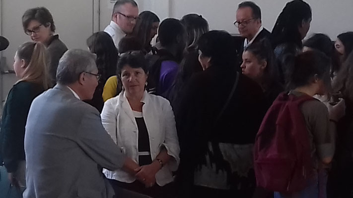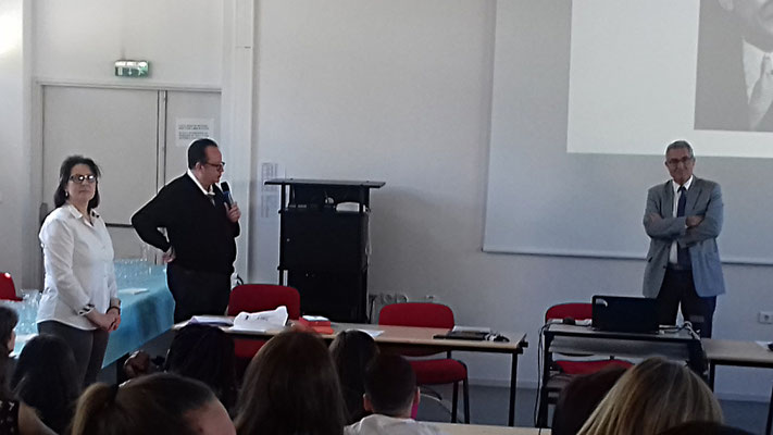 Après l'apposition de la plaque labellisant notre établissement école ambassadrice, une conférence a eu lieu en présence des élèves engagés dans le programme, à savoir les 3èmes et les terminales ASSP, qui étaient accompagnés par leurs professeurs. Emmanuelle Bedou, proviseure adjointe, 24/04/2018.